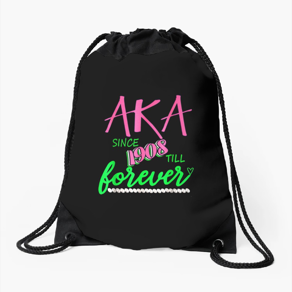 You are viewing an exclusive and elegant product AKA Sorority Alpha Kappa Pink And Green Twenty Pea Drawstring Bags For Black belong theme Drawstring Bags at Printblur
