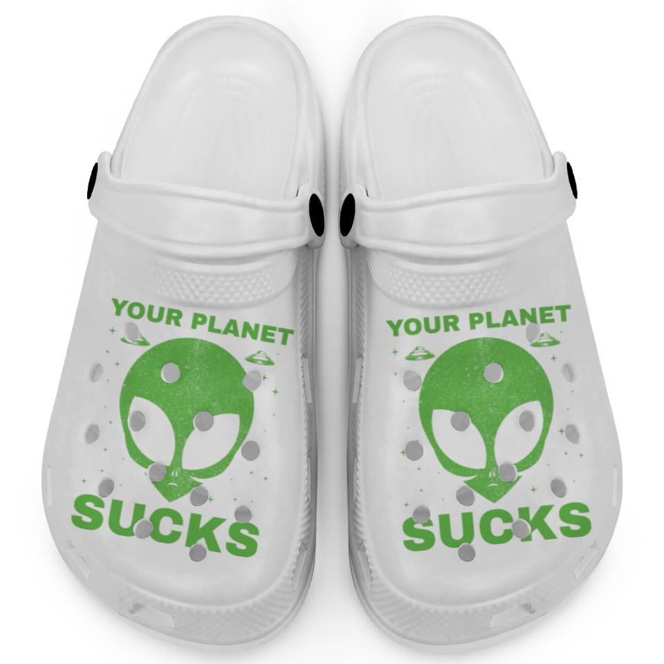 You are shopping for a stunning and trendy product Alien, Aliens, UFO, UAP, Space Unknown Flight Clogs For Kids WHITE belong theme Clogs at Printblur