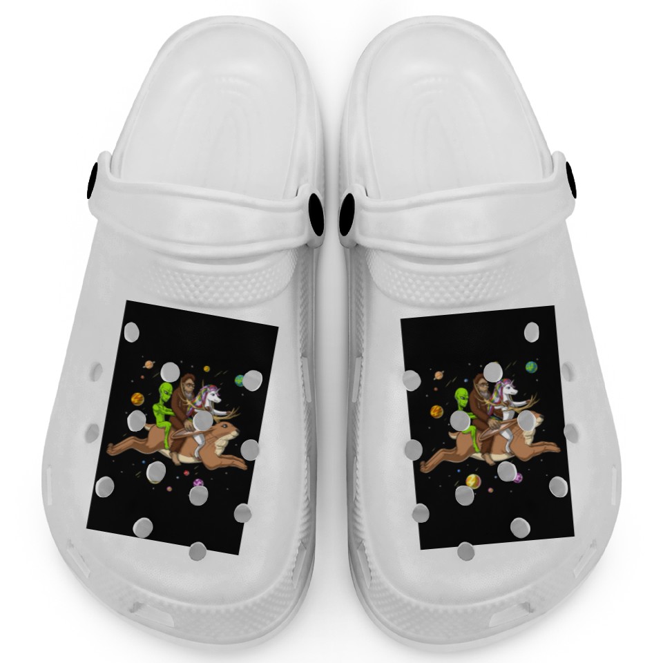 Alien Bigfoot Unicorn Riding Jackalope Clogs