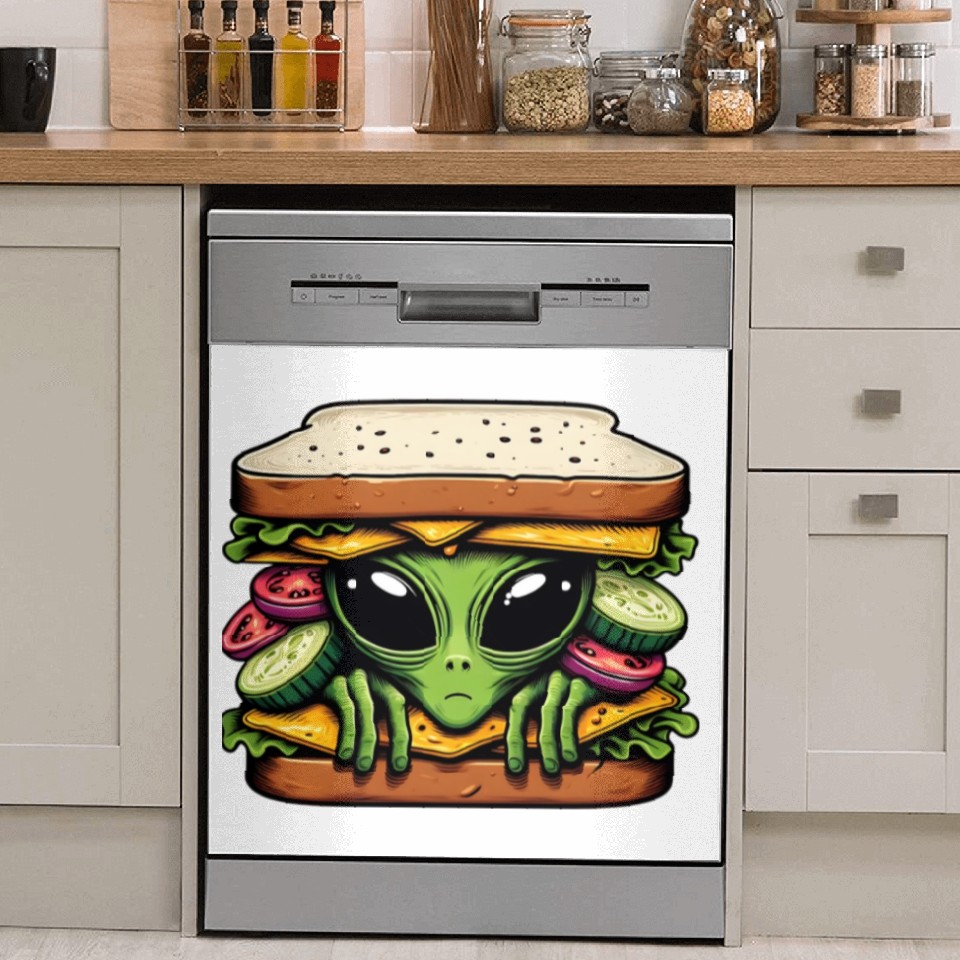 Own fascinating Alien Hiding in a Sandwich Dish Washer Covers or see more Dish Washer Covers products now from Printblur shop to enjoy your shopping time!
