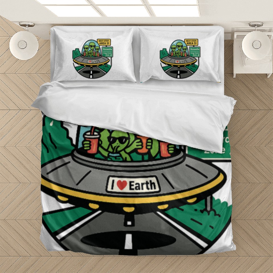 Own fascinating Alien road trip Bedding Sets or see more Bedding Sets products now from Printblur shop to enjoy your shopping time!