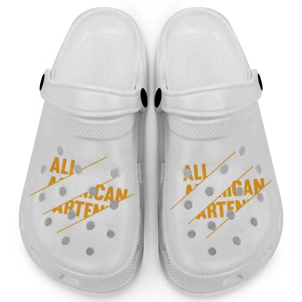 The item hot trend you're looking at is All American Bartender Clogs For Kids WHITE belong theme Clogs at Printblur