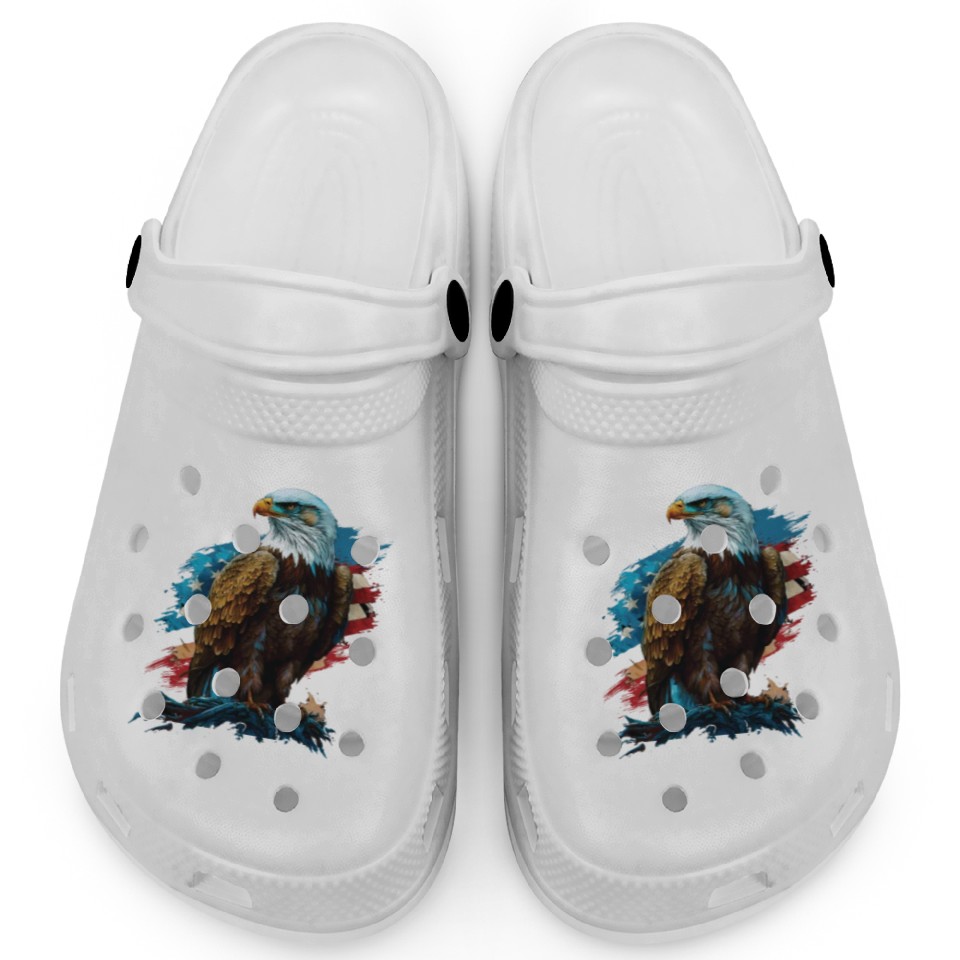 The product unique design you searched for is All We Need Is US Patriotism Patriotic July 4th Clogs For Kids WHITE belong theme Clogs at Printblur