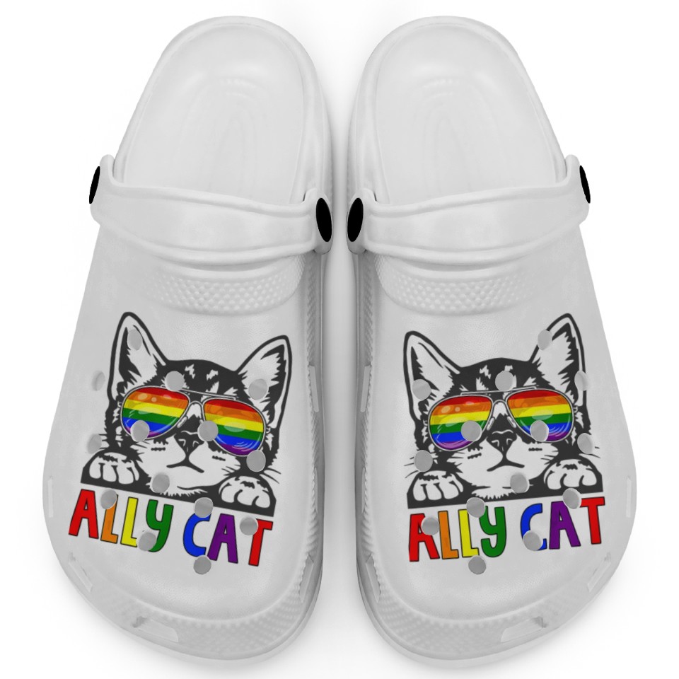 Ally Cat LGBT Gay Rainbow Pride Flag Clogs