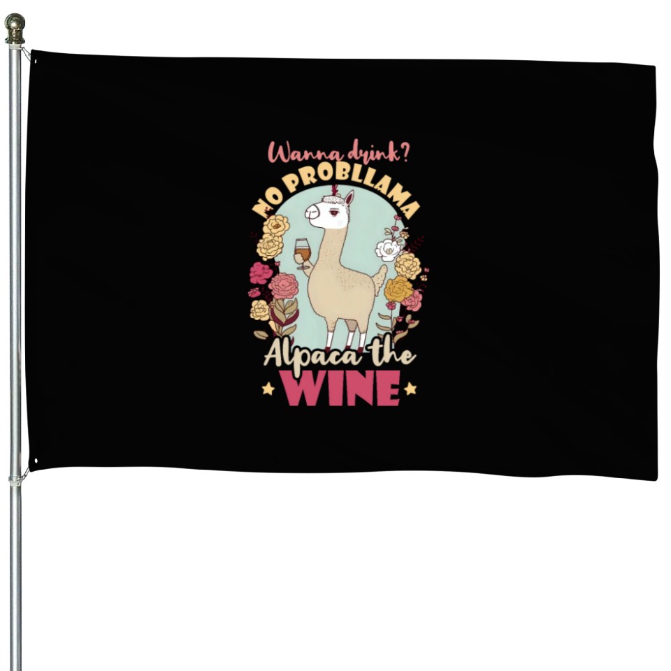 You are shopping for a stunning and trendy product Alpaca Llama Wanna Drink Alpaca Wine House Flags For Black belong theme House Flags at Printblur
