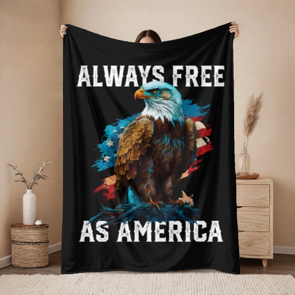 Buy eye-catching Always Free as America American Bald Eagle USA Throw Blankets or see more Throw Blankets products at Printblur shop now to explore many surprises from our shop!