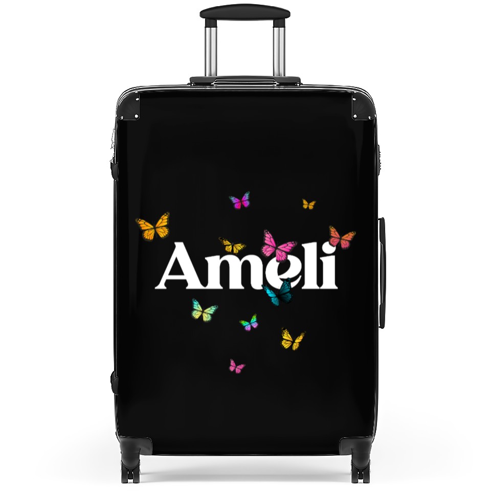 Buy eye-catching AMELI - beautiful girl name with cute butterflies Suitcases or see more Suitcases products at Printblur shop now to explore many surprises from our shop!