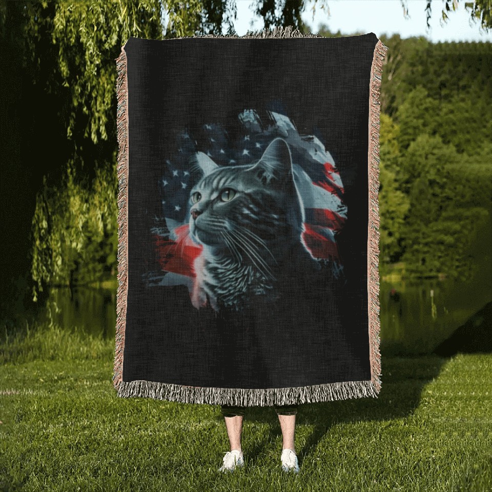 You are seeing a unique and impressive product America cat under Moon with American Flag Woven Blankets For Black belong theme Woven Blankets at Printblur