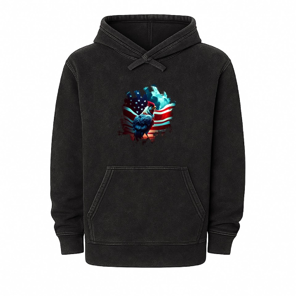 You are shopping for a stunning and trendy product America chicken under Moon with American Flag Mineral Wash Hoodies For Unisex Mineral Black belong theme Mineral Wash Hoodies at Printblur
