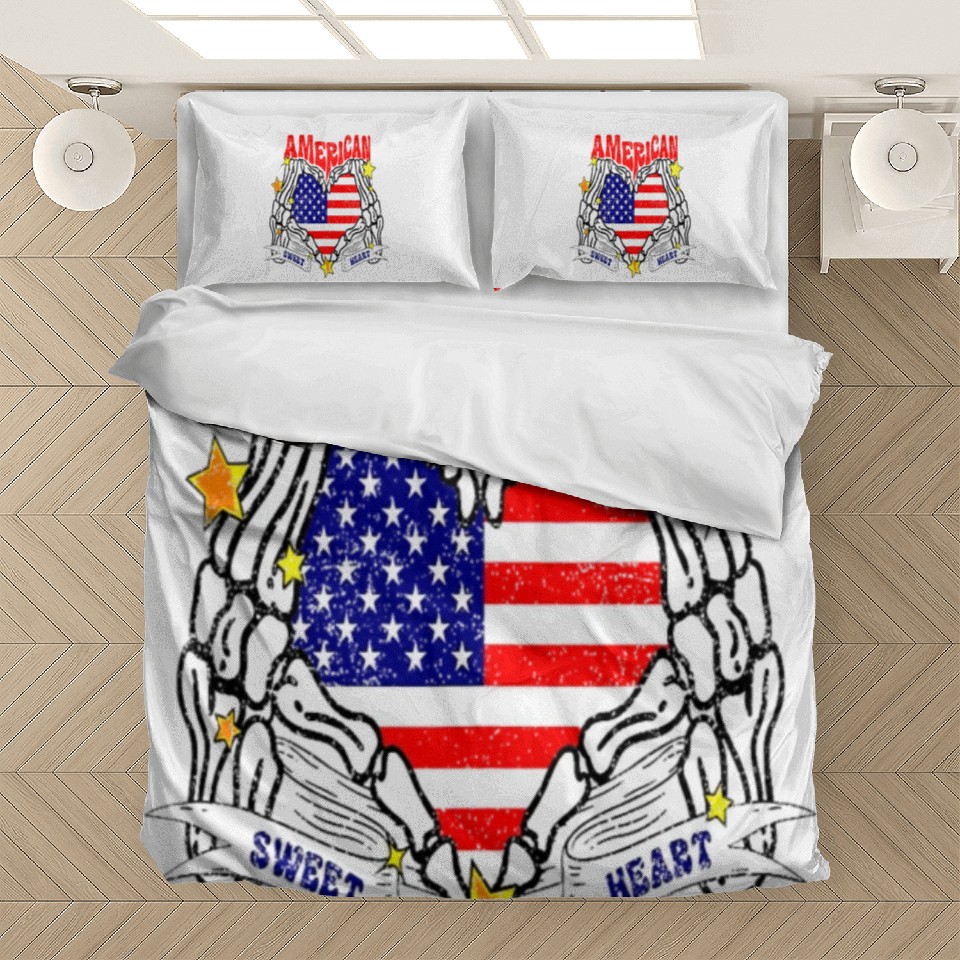 Buy stunning America Sweet Heart Skeleton Hands Heart Flag 4th Bedding Sets or see more Bedding Sets products at Printblur right now to receive many amazing discounts!