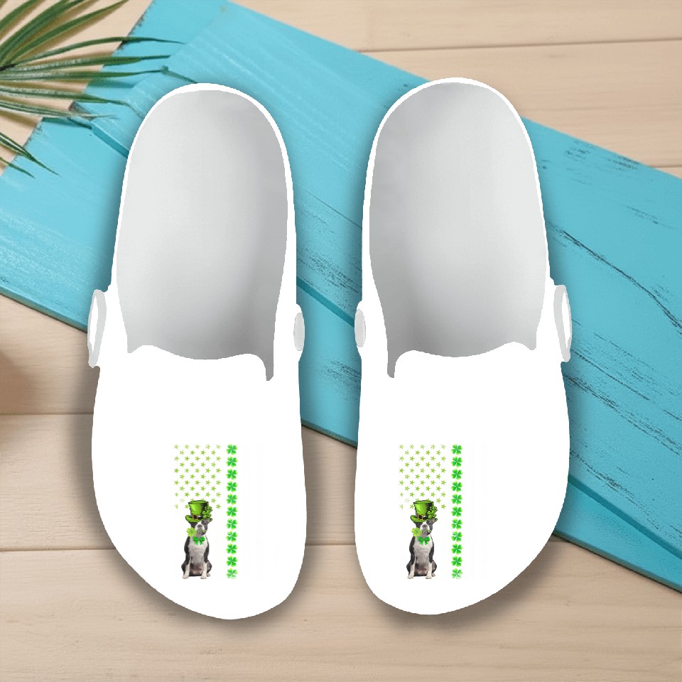 You're looking at the eye-catching product American Flag Boston Terrier Dog St Patric Day Slip On Clogs For Women WHITE belong theme Slip-On Clogs at Printblur