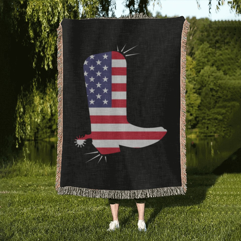 You're searching for a one-of-a-kind product American Flag Cowboy Boot Stars And Stripes Woven Blankets For Black belong theme Woven Blankets at Printblur