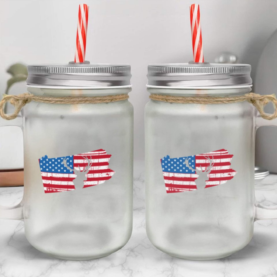 You are shopping for a stunning and trendy product American Flag Pennsylvania Deer Hunting Mason Jar Cups For belong theme Mason Jar Cups at Printblur