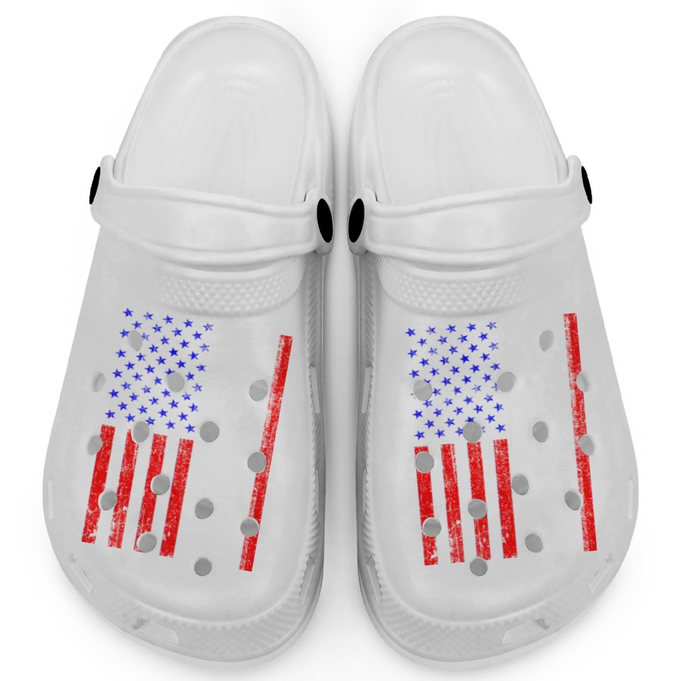 You are viewing an exclusive and elegant product American Flag Piston Muscle Car Patriotic Vintage Clogs For Kids WHITE belong theme Clogs at Printblur