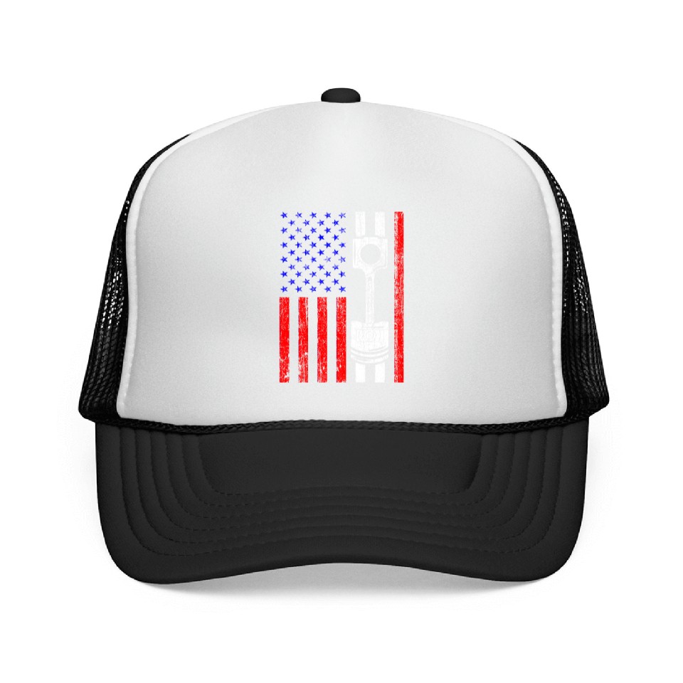 Buy stunning American Flag Piston Muscle Car Patriotic Vintage Trucker Caps or see more Trucker Caps products at Printblur right now to receive many amazing discounts!