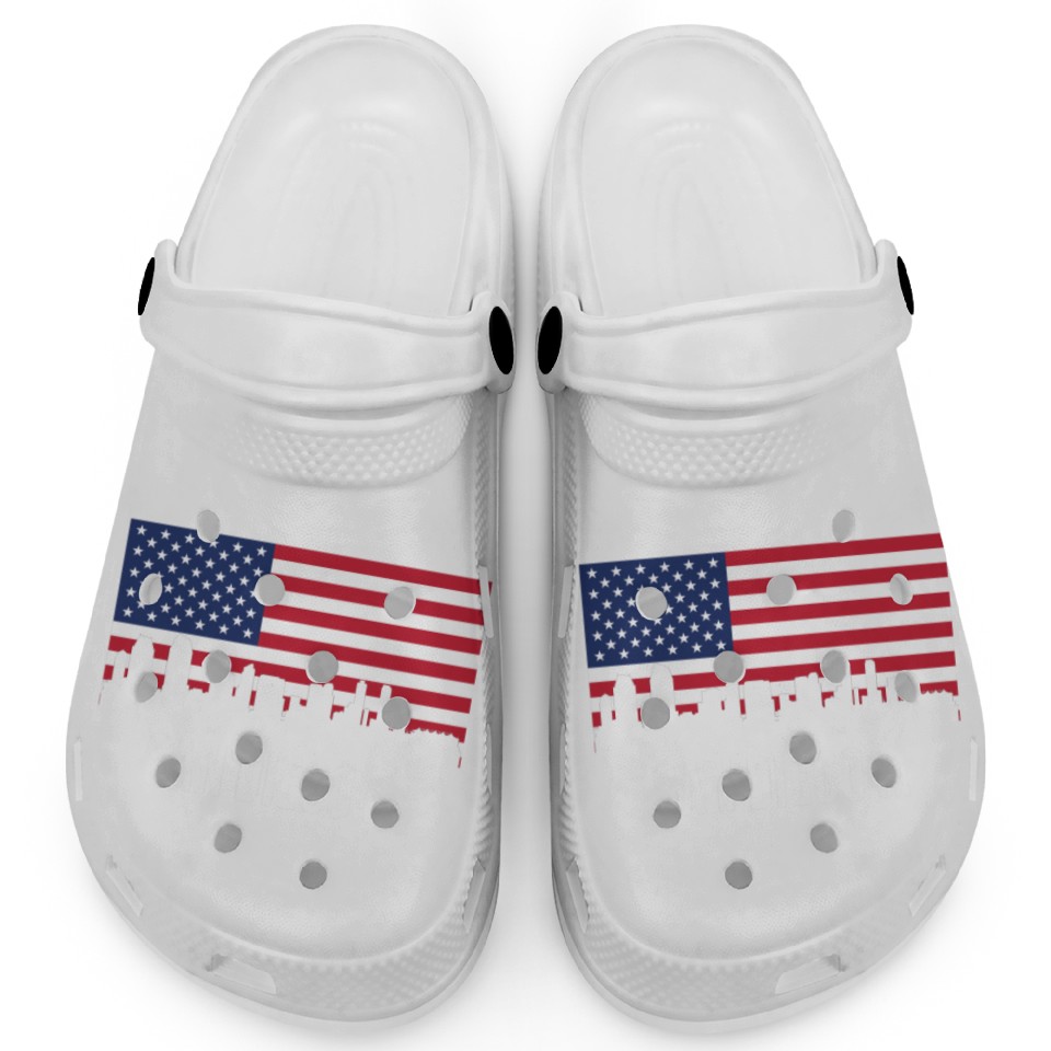 Buy eye-catching American Flag San Diego Skyline Clogs or see more Clogs products at Printblur shop now to explore many surprises from our shop!