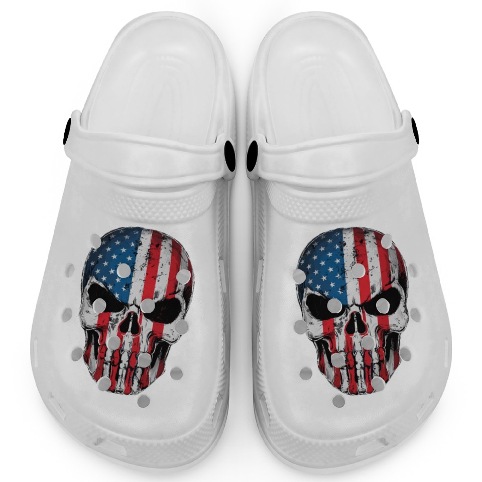 You're looking at the eye-catching product American Flag Skull Clogs – Patriotic Grunge USA For Kids WHITE belong theme Clogs at Printblur