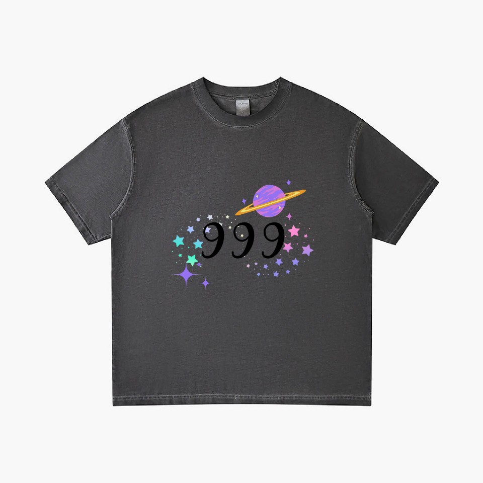 You're taking a peek at the product Angel Numbers 999 Purple Saturn with Stars Gradient T Shirts For Men Washed Black belong theme Gradient T-Shirts at Printblur