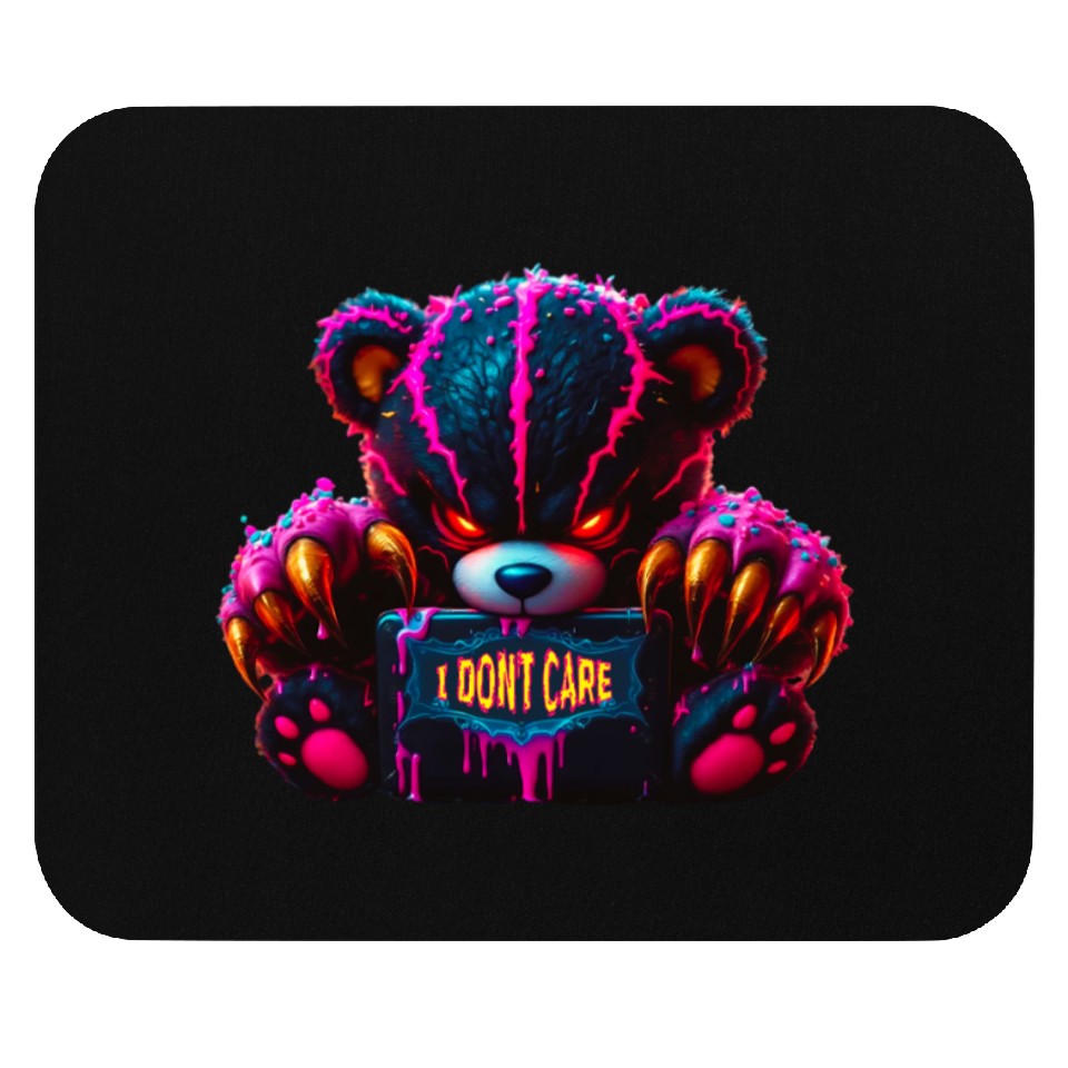 Angry Neon Bear "I DON'T CARE" – Edgy Graffiti Mouse Pads