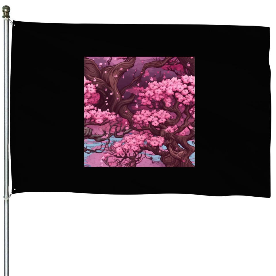 You are contemplating one of the best-selling products Anime Euphoria: Fantasy Cherry Blossom Dreamscape House Flags For Black belong theme House Flags at Printblur