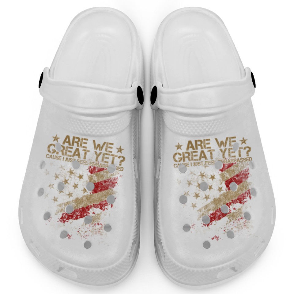 You're taking a peek at the product Anti-Trump - Are We Great Yet? Clogs For Kids WHITE belong theme Clogs at Printblur