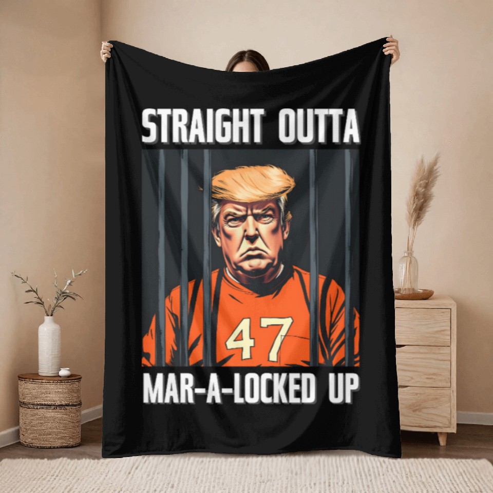 Buy eye-catching Anti-Trump Funny Straight Outta Mar-A-Locked Up Throw Blankets or see more Throw Blankets products at Printblur shop now to explore many surprises from our shop!