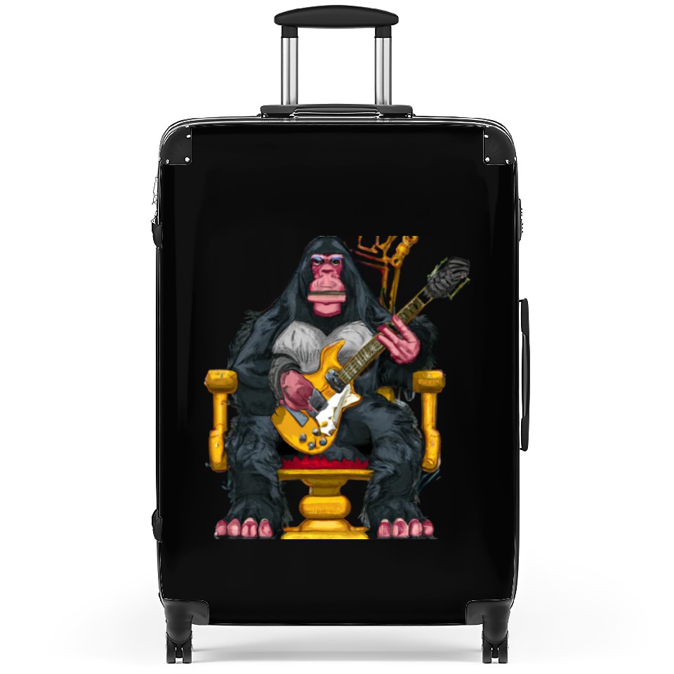You are contemplating one of the best-selling products Ape sitting on a throne hold an electric guitar Suitcases For Black belong theme Suitcases at Printblur