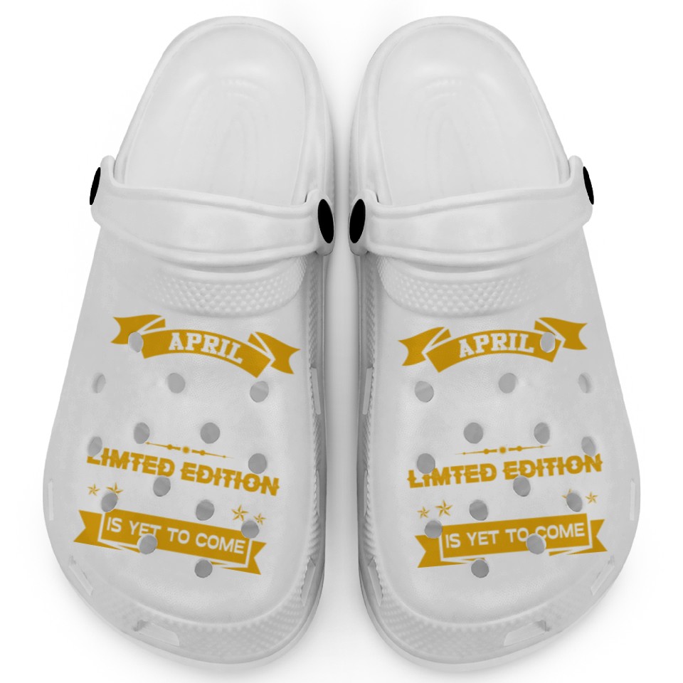 The item hot trend you're looking at is April 1973 Birthday Surprise Clogs For Kids WHITE belong theme Clogs at Printblur