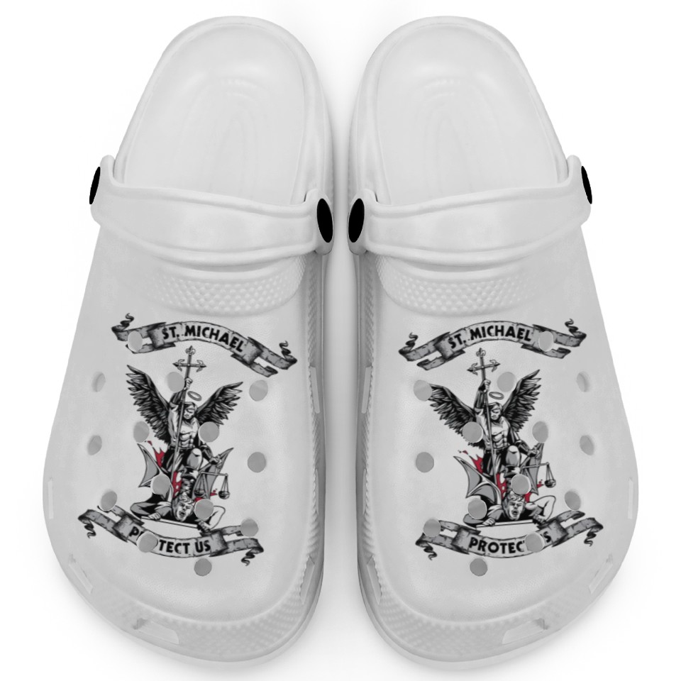 You're searching for a one-of-a-kind product Archangel Saint Michael Protect Us Defend Us Long Clogs For Kids WHITE belong theme Clogs at Printblur