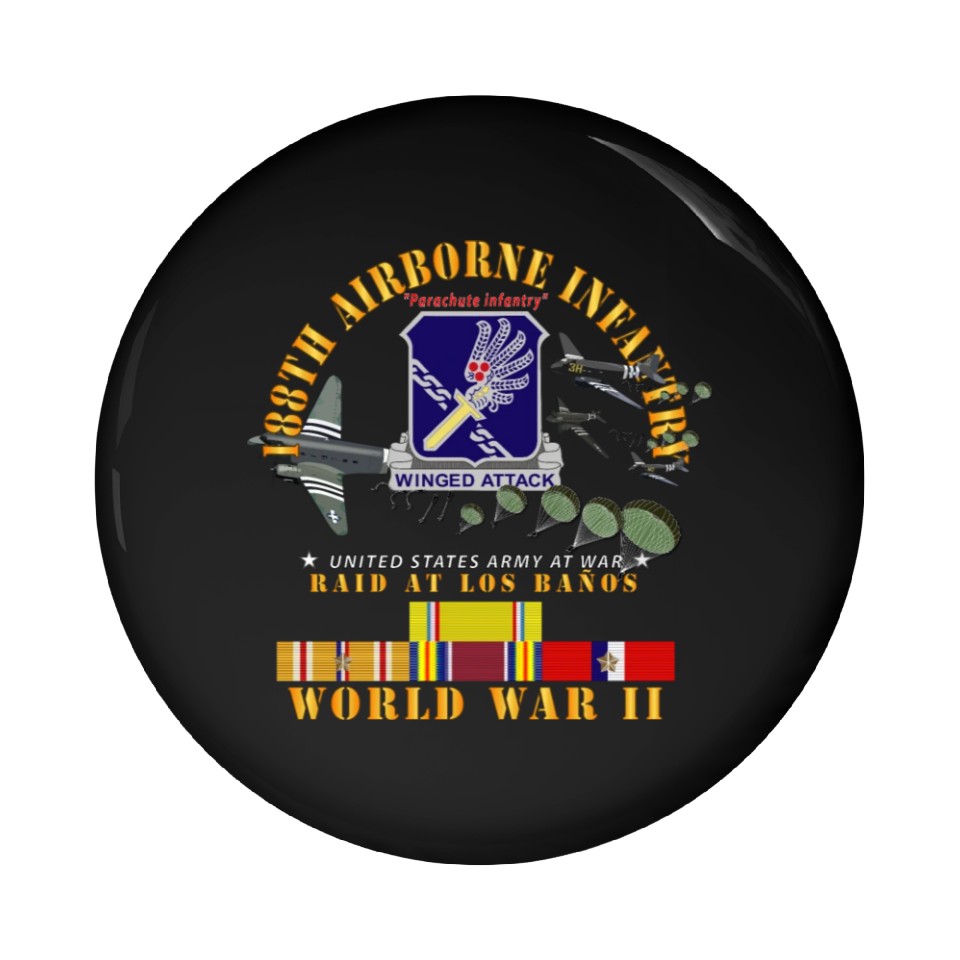 The item hot trend you're looking at is Army 188th Airborne Infantry Raid at Los Baños W J Pin Buttons For Black belong theme Pin Buttons at Printblur