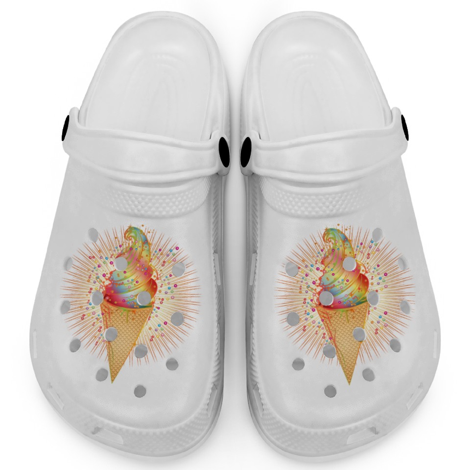 The item hot trend you're looking at is Artfully decorated ice cream in a waffle cone Clogs For Kids WHITE belong theme Clogs at Printblur