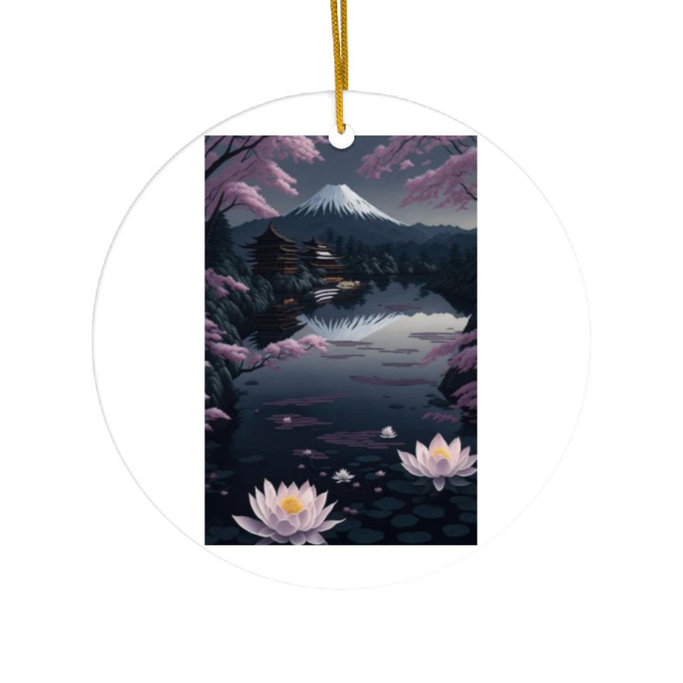 You are shopping for a stunning and trendy product Asia Landscape by night Serene Mount Fuji Ceramic Ornaments For WHITE belong theme Ceramic Ornaments at Printblur