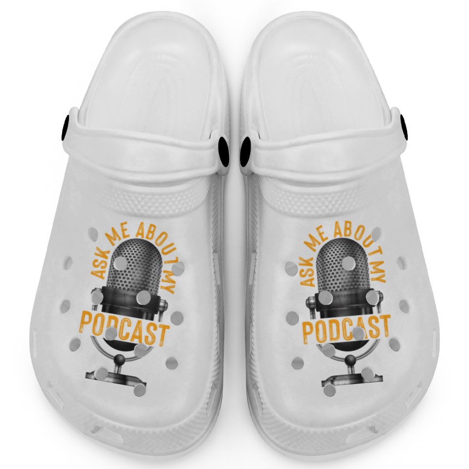 Shop for impressive Ask About Podcast Vintage Microphone Podcaster Fun Clogs or see more Clogs products right now on Printblur to enjoy your happiness!