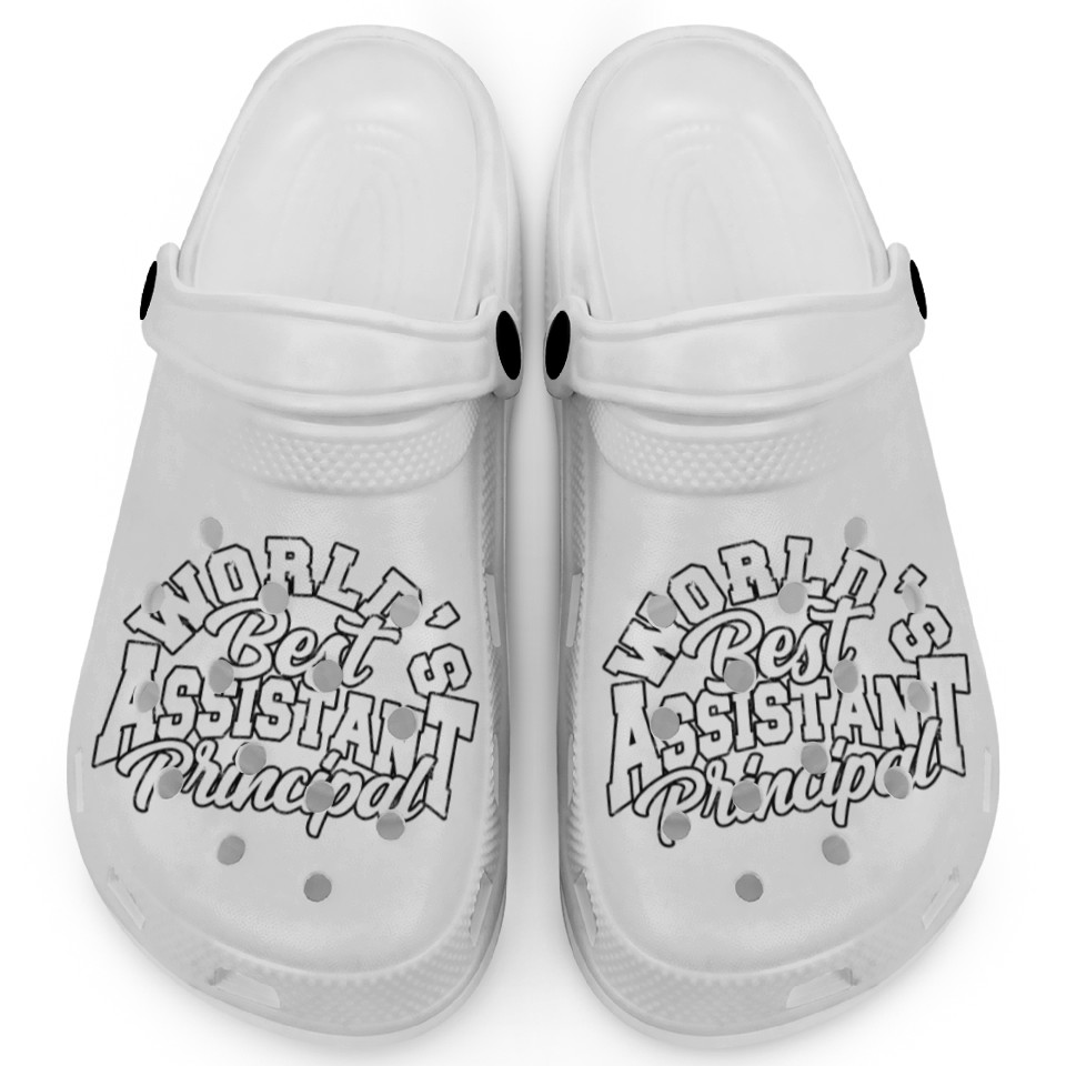 You're taking a peek at the product Assistant Principal Back School Teacher Principal Clogs For Kids WHITE belong theme Clogs at Printblur