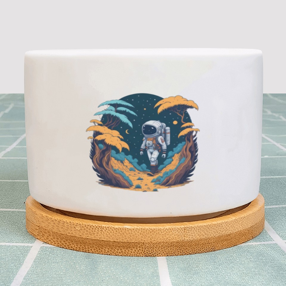 You are contemplating one of the best-selling products Astronaut walking in the jungle Plant Pots For WHITE belong theme Plant Pots at Printblur
