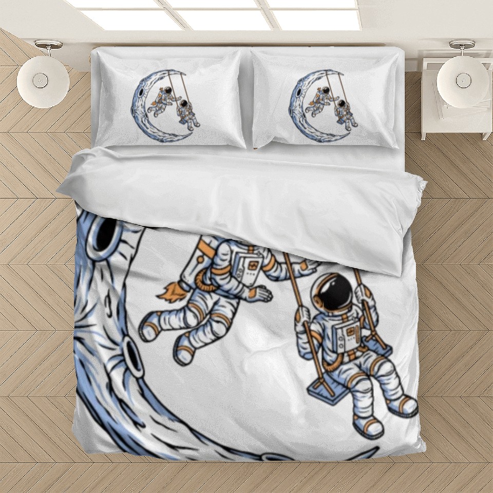 You are shopping for a stunning and trendy product Astronauts on swing on moon Bedding Sets For WHITE belong theme Bedding Sets at Printblur