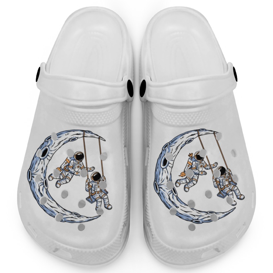 You are viewing one of the trendiest products Astronauts on swing on moon Clogs For Kids WHITE belong theme Clogs at Printblur