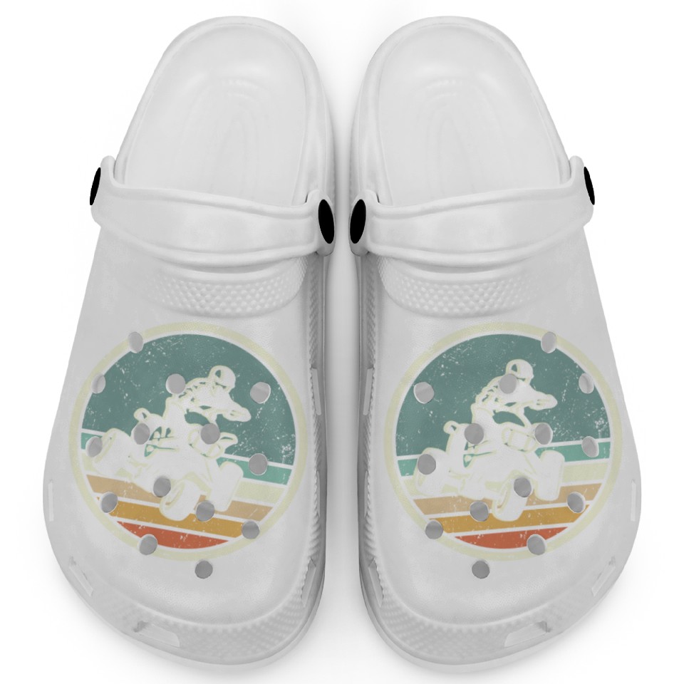 You are shopping for a stunning and trendy product ATV Biker Retro Vintage 4 wheeler Quad Clogs For Kids WHITE belong theme Clogs at Printblur