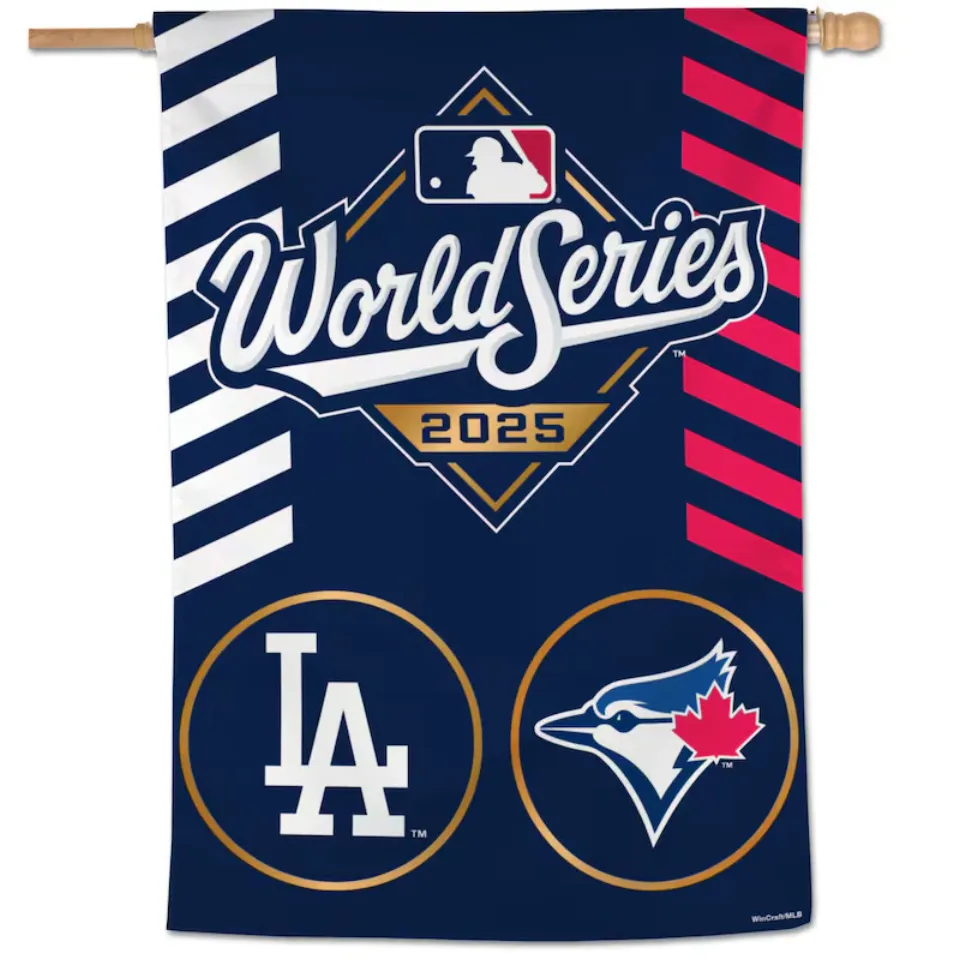 The item hot trend you're looking at is 2025 World Series Los Angeles Dodgers Toronto Blue Jays Vertical Flag For belong theme Flags at Printblur