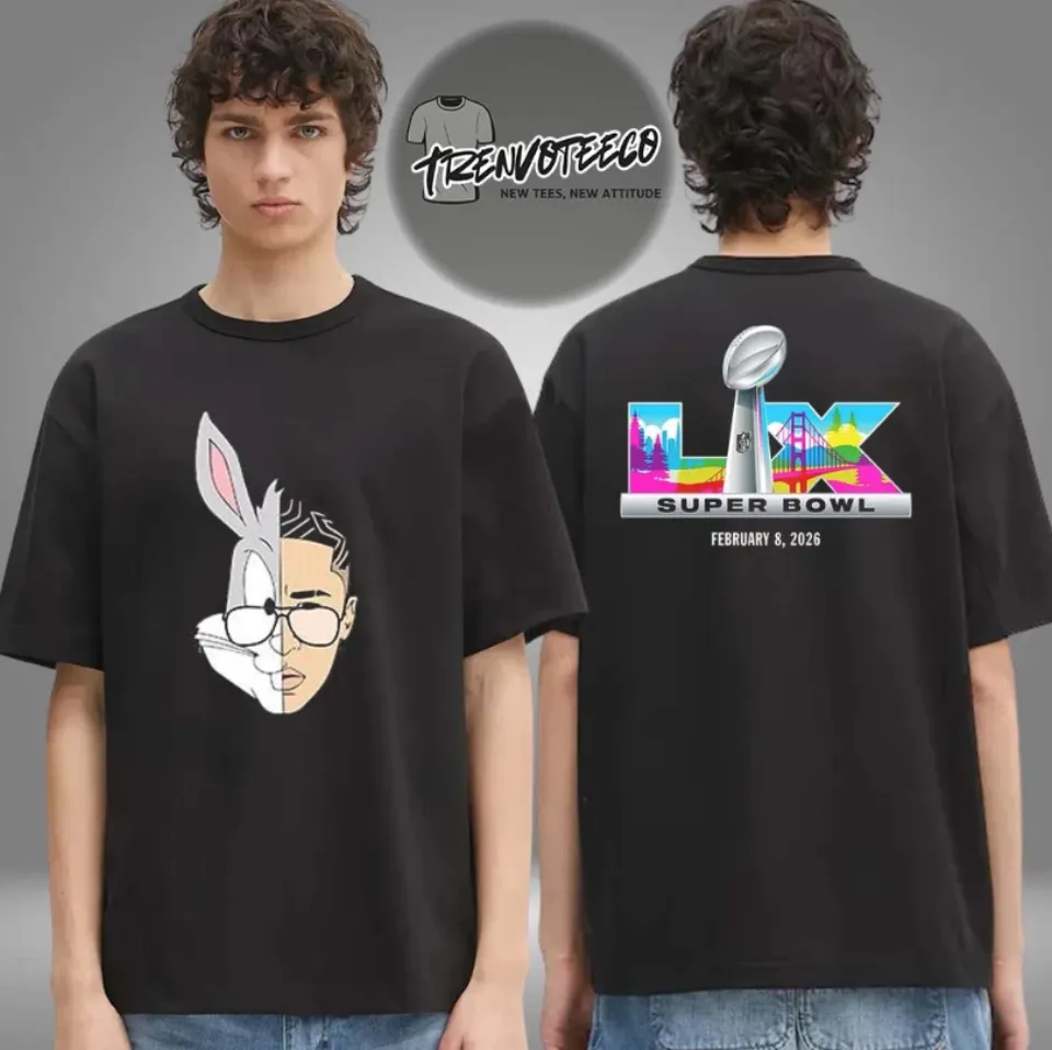 Buy eye-catching Bad Bunny X Super Bowl Merch 2026 Logo Two Sided Unisex T-Shirt or see more Double Sided T-Shirts products at Printblur shop now to explore many surprises from our shop!