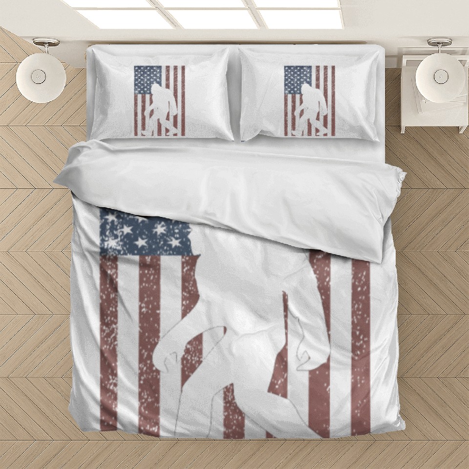 The product unique design you searched for is Bigfoot Sasquatch American Flag USA Bedding Sets For WHITE belong theme Bedding Sets at Printblur