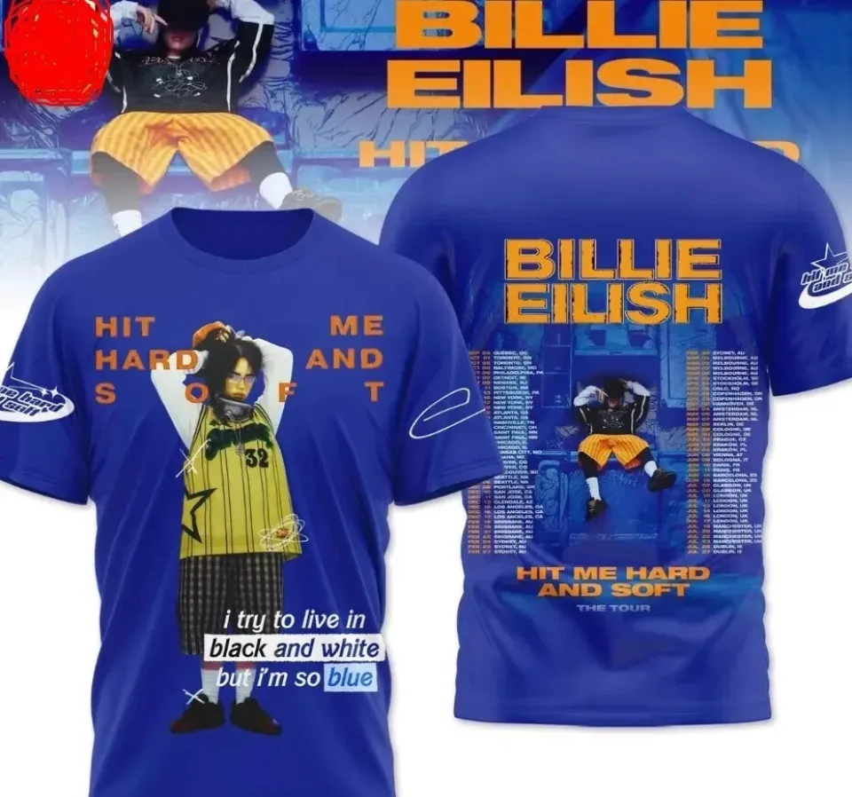 Shop for attractive Billie Eilish Hit Me Hard And Soft The Tour 2025 3D T-Shirt or see more 3D T Shirts products on https://printblur.com right now!