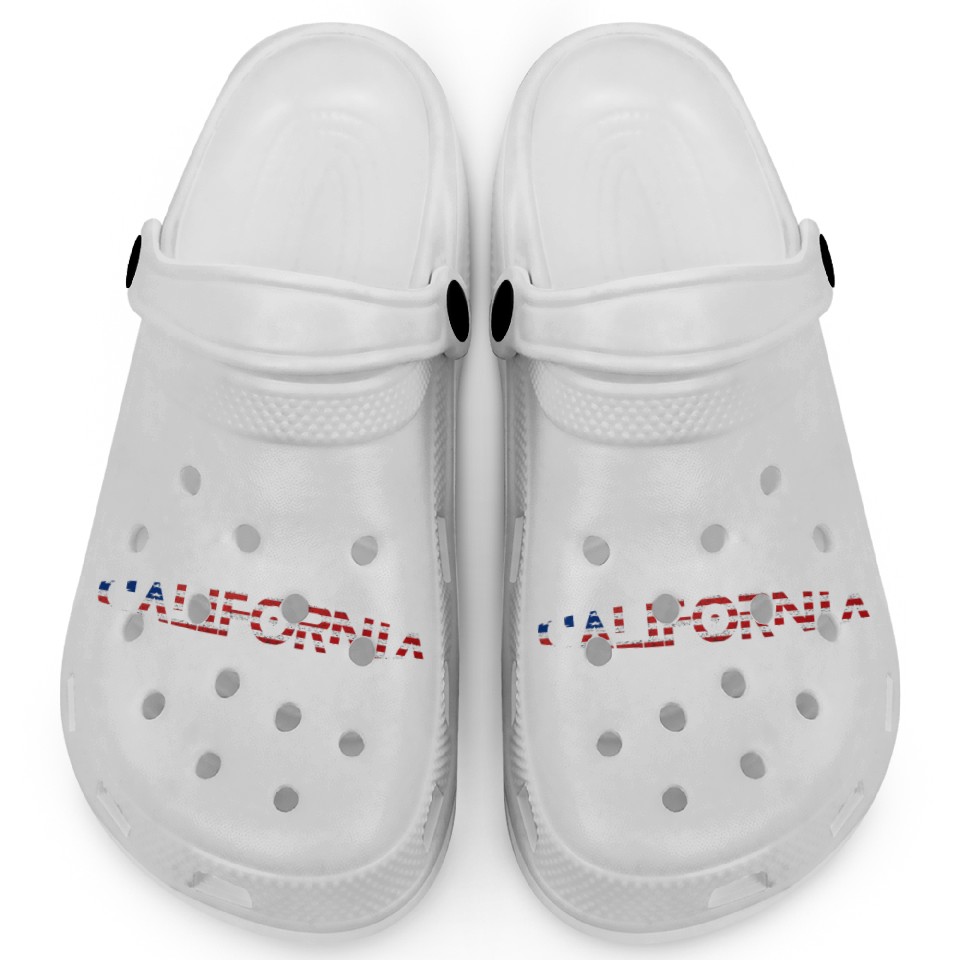 You are shopping for a stunning and trendy product CALIFORNIA designed and coloring by usa flage Clogs For Kids WHITE belong theme Clogs at Printblur