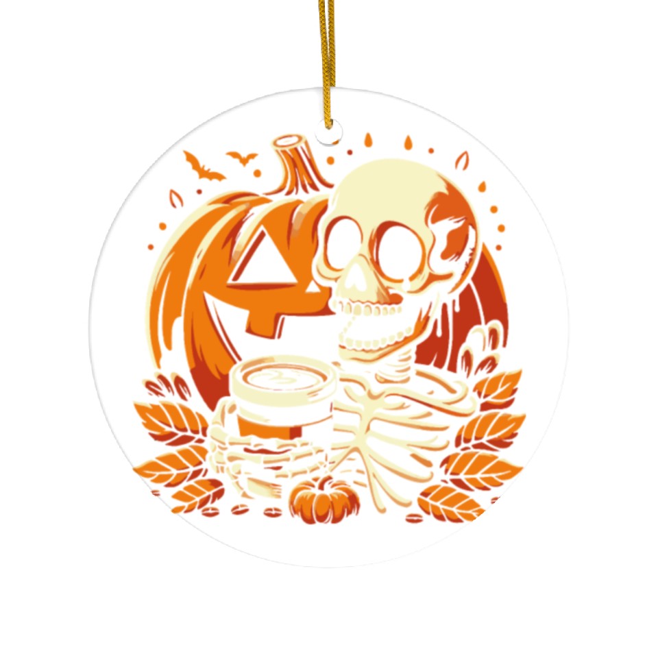 You're searching for a one-of-a-kind product Coffee Drinking Skeleton Pumpkin Halloween Costume Ceramic Ornaments For WHITE belong theme Ceramic Ornaments at Printblur
