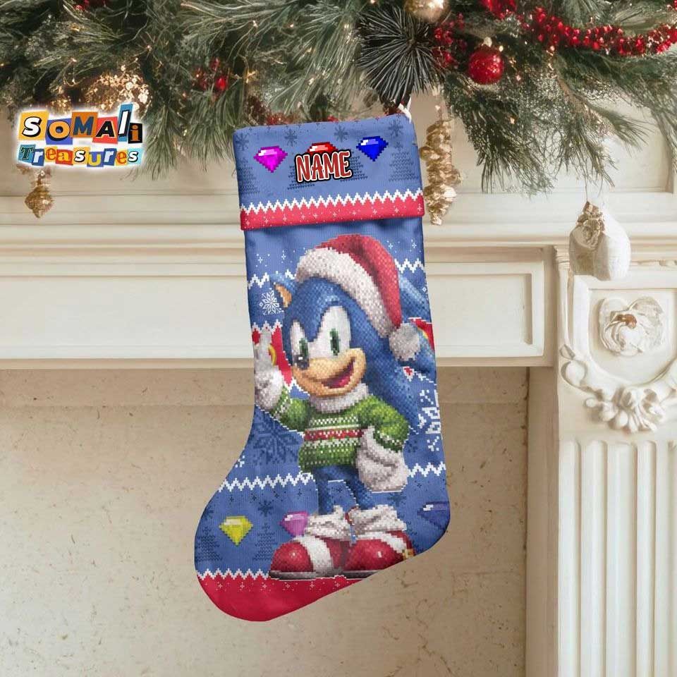You're searching for a one-of-a-kind product Custom Sonic Ugly Pattern Christmas Stocking, Holiday Decor for Family Fireplace, Cozy Accessories Gift For belong theme Christmas Stockings at Printblur