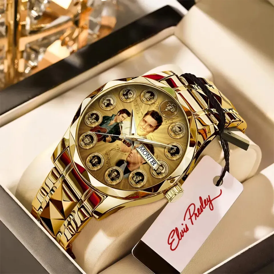 You are shopping for a stunning and trendy product Elvis Presley Alloy Luxury Quartz Watch – 17869 For Gold belong theme Stainless Steel Men's Watches at Printblur