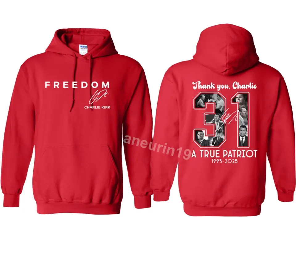 Own fascinating Freedom Charlie Kirk Memorial Unisex Hoodie or see more Double Sided Hoodies products now from Printblur shop to enjoy your shopping time!