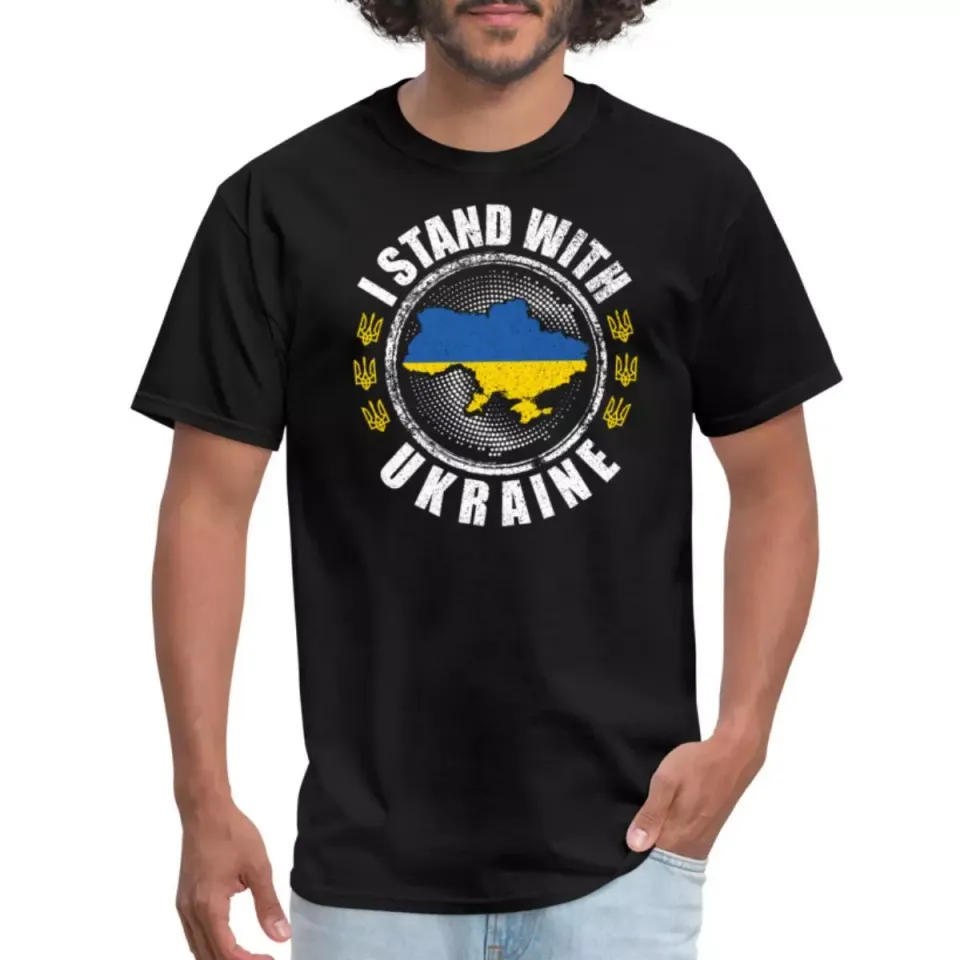 Shop for attractive I Stand With Ukraine Trident Logo Ukrainian Flag Men's T-Shirt or see more T-Shirts products on https://printblur.com right now!