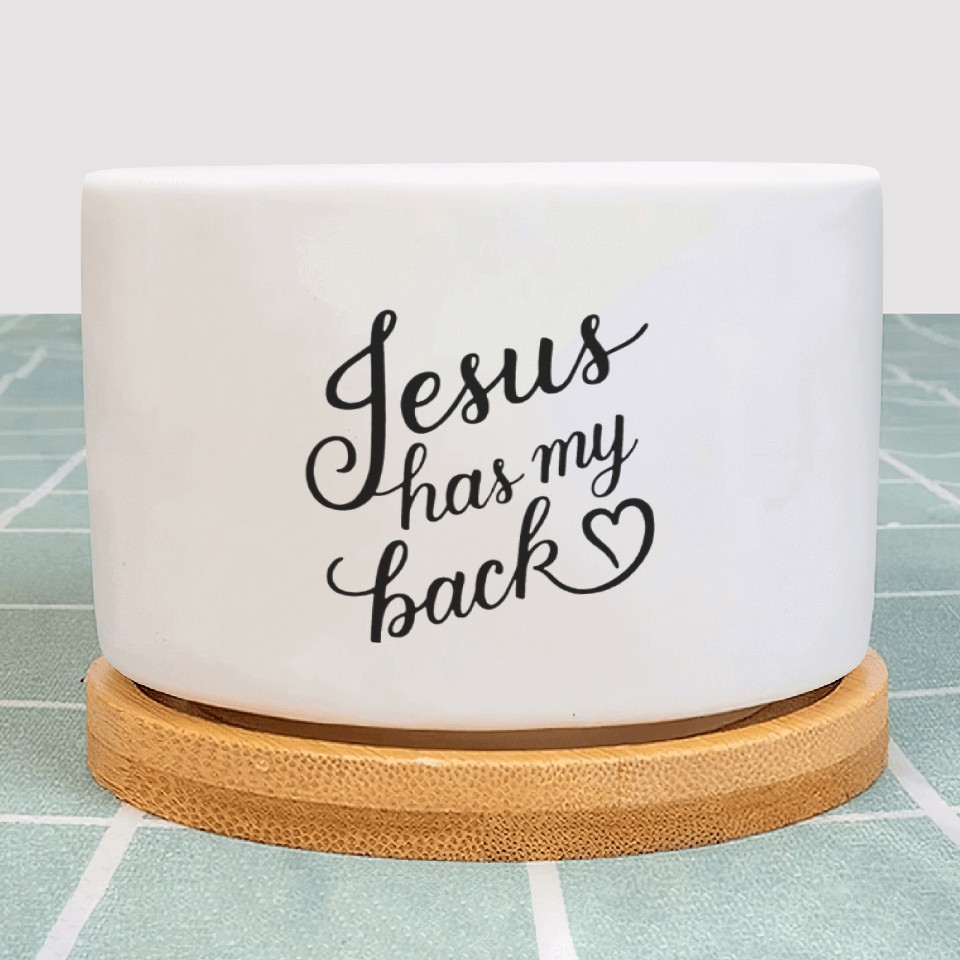 Buy eye-catching Jesus has my back 01 Plant Pots or see more Plant Pots products at Printblur shop now to explore many surprises from our shop!
