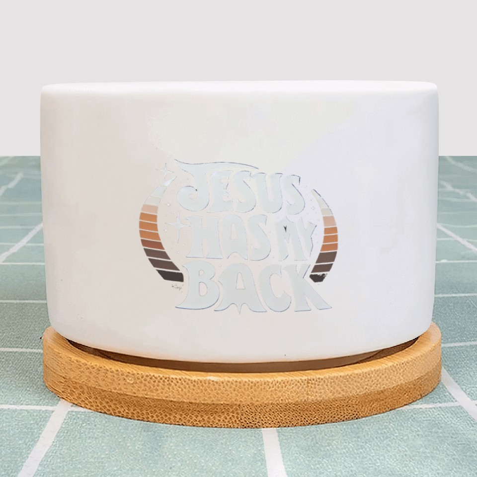 You are contemplating one of the best-selling products Jesus Has My Back 23 Plant Pots For WHITE belong theme Plant Pots at Printblur